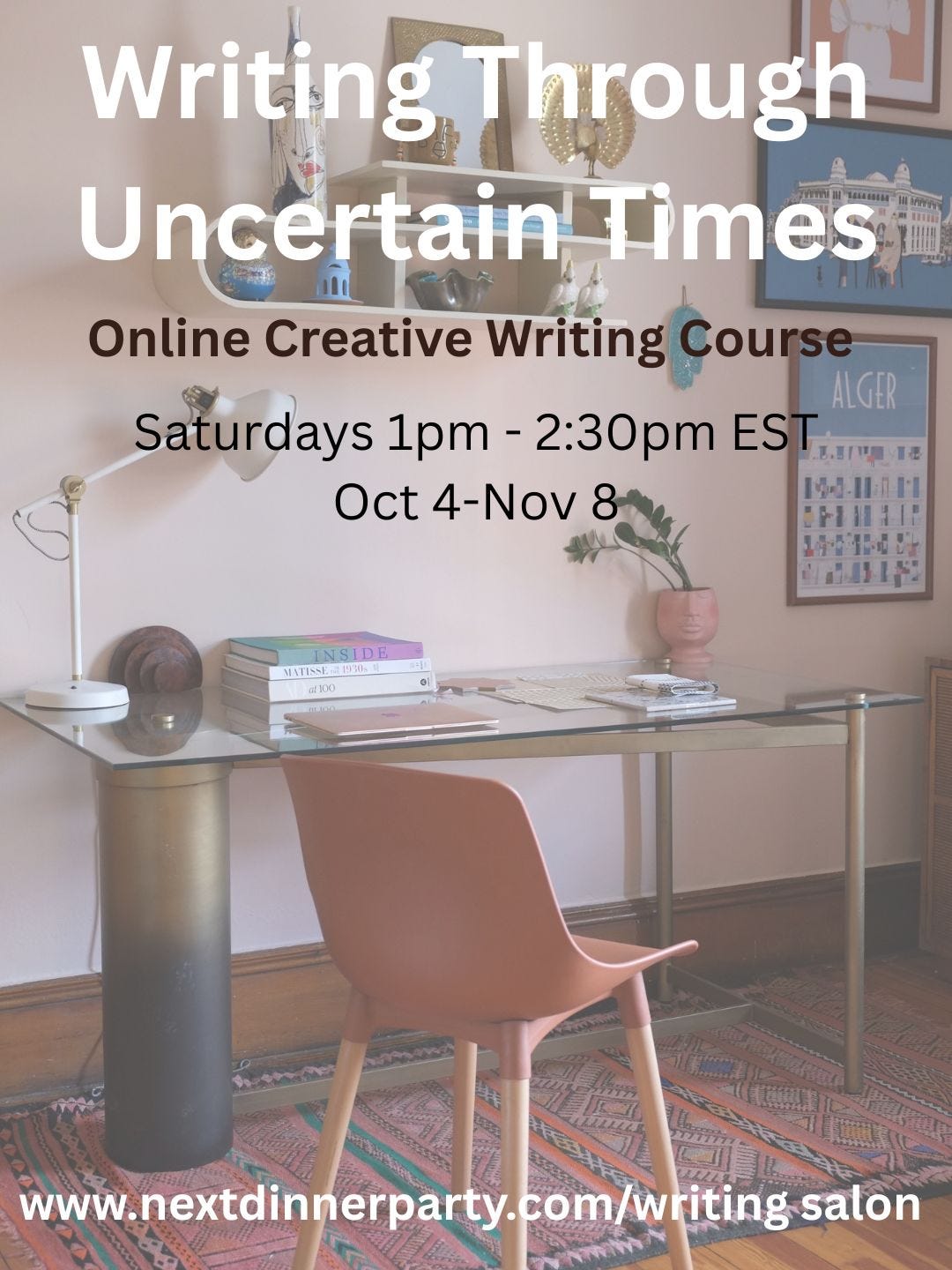 Last month, I wrapped up my first Writing Through Uncertain Times salon and I must say, it went even better than I could have hoped. Turns out I didn’t need to devote months to developing curriculum because what I wanted to teach and discuss where all the things I’ve read - short stories, essays, poems - over the years that I’d already stored away and ruminated over. Elena Ferrante. Elie Wiesel. Annie Ernaux. The salon was full of engaged and talented individuals and I got to combine by newfound love of teaching with my longknown love of hosting. (I served food at each session, which were hosted in my DC apartment). It was such a success I immediately scheduled the next one because momentum.